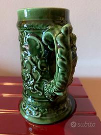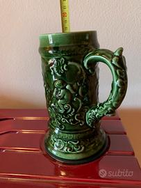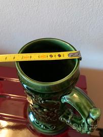 Meraviglioso boccale da birra in splendida ceramica artistica artigianale di un verde intenso realizzato a Nove Vicenza da Petrucco e tolio Un pezzo vintage da collezione anni 60