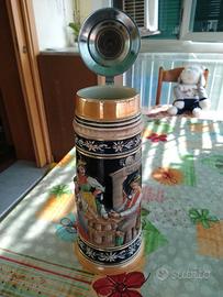 BOCCALE BIRRA TEDESCO IN CERAMICA COLORATA CON COPERCHIO IN PELTRO