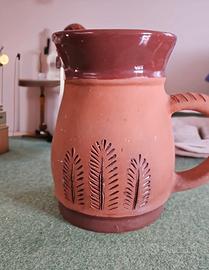 Boccale in terracotta artigianale, caratterizzata da un bassorilievo che raffigura due personaggi maschili. Ritiro e trasporto a carico dell'acquirente
