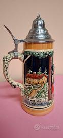 Il coperchio, tipico dei boccali tedeschi, serviva in passato per proteggere la bevanda da insetti e polvere.