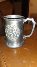 Boccale vintage in peltro con elegante stemma araldico raffigurante un drago. un pezzo unico per gli amanti del genere. misure: cm9x8. peso: gr200.
