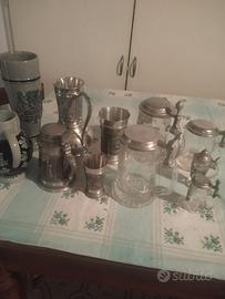 boccali birra vintage in vetro, ceramica e alpaca, dimensioni varie. usato come nuovo