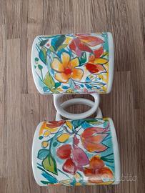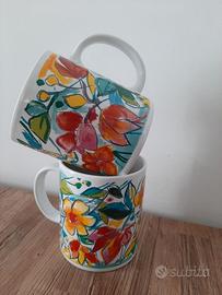 Vendo due boccali in ceramica con decoro esclusivo di Emanuele Luzzati. Mai usati. Perfetti. Disponibili, con lo stesso decoro, piattini, tazze da caffè e un tegame.