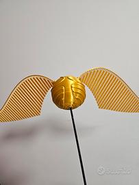 Fantastico boccino in stampa 3D sfera centrale con diametro di 8 cm lunghezza totale ala 30 cm totale apertura 66 cm. Colore oro materiale pla ali flessibili.