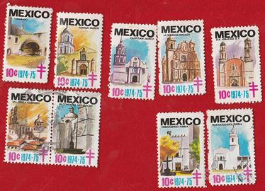ERINNOFILIA, MESSICO CAMPAGNA TUBERCOLOSI 1974-75, SERIE ARCHITETTONICA #frb217 € 5,00