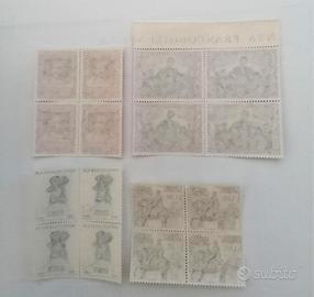E 52 francobolli italia n. 4 quartine nuove bimillenario della morte di cicerone – centenario della morte di san domenico savio- 150° anniversario della nascita di giuseppe garibaldi