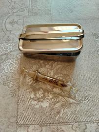 Bollitore, sterilizzatore in acciaio inox, con siringa in vetro degli anni '50-'70.