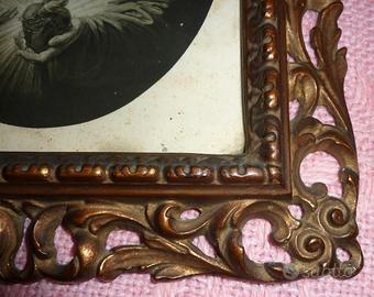 in b/n entro cornice in legno intagliata a mano, con finitura a stucco e ombreggiature color oro antico