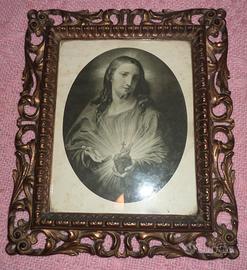 Bologna - stampa del Sacro Cuore di Gesù - Arte Sacra - cornice legno intagliata