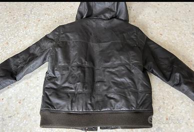 Composto da Colletto con Cappuccio imbottito chiusura con Zip Centrale, possiede 2 tasche esterne chiuse da bottone a pressione e 2 tasche interne chiuse con velcro, maniche lunghe. Il bordo delle maniche e quello del chiodo sono rifiniti con una fascia elastica in maglia Il taglio corto e retto ricorda lo stile motorcycle. Il capo è in ottime condizioni. Capo molto caldo in quanto tutto imbottito.