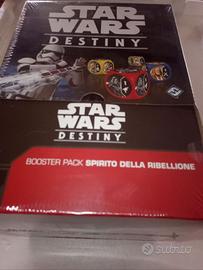 Box nuovi e sigillati da 36 booster pack del gioco di carte e dadi Star Wars Destiny, ogni bustina contiene 5 carte e 1 dado. Nel caso servissero più box chiedete pure. Oggetto venduto con formula visto e piaciuto, non si accetta alcuna restituzione o rimborso. - L'Impero in guerra - Spirito della ribellione - Risvegli