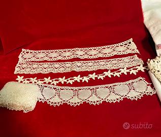 Vendo dei bordi e delle frange lavorate originali degli anni 30/40 da inserire negli asciugamani o altri pezzi per dare un tocco di antico. Alcuni pezzi sono una trentina di centimetri altri si vede dalla foto sono molto più lunghi. Vendo il tutto per 18 euro spese di spedizione escluse.