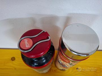 Vendo due borracce/thermos della Coca-cola, nuove mai usate, più vassoio Coca-cola dove è stato incollato un gancio per appenderlo ma di facile rimozione