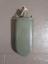 Borraccia dell’esercito austro-ungarico della Prima Guerra Mondiale, in buone condizioni, con timbro originale, completa di tappo in sughero e cordino. Non facile da trovare.