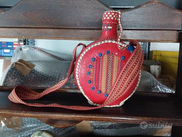 Vendo borraccia originale della Bulgaria, in vetro rivestito di pelle e stoffa con tracolla, misure 13 x 18 x 5,5 cm