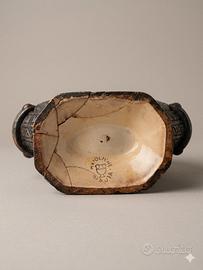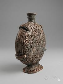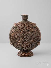 Maioliche Deruta. Borraccia in ceramica smaltata, 1910 circa. Cm. 22x19x4. Marchio Maioliche Deruta sotto la base.