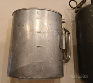 Borraccia militare Esercito Svizzero originale anni '50, con gavetta in dotazione, chiusura con tappo di sughero marca SIGG 1950