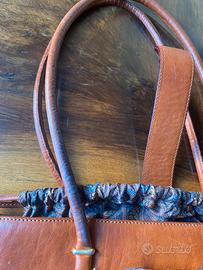 Borsa a spalla vintage in pelle cuoio. Interno in stoffa. Misure nelle foto.