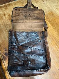 Borsa Tracolla Artigianale Vintage anni '70 - Cuoio Patchwork Splendida borsa a tracolla interamente realizzata a mano, autentico pezzo di artigianato anni '60/'70. Non è un prodotto industriale, ma un oggetto creato con la tecnica del recupero (patchwork) e decorato con intagli geometrici sul lembo frontale.
