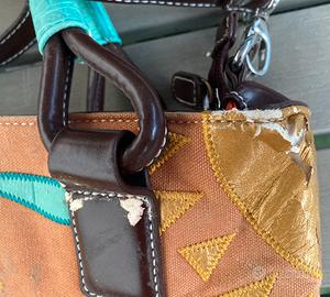 borsa Braccialini della linea Cartoline. La borsa ha dei difetti sulle decorazioni esterne come evidenziato nelle foto. E’ comunque ancora funzionale e utilizzabile.