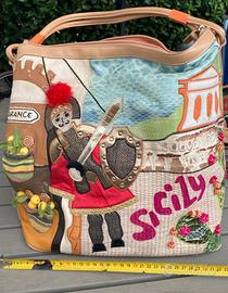 borsa Braccialini della linea Cartoline. La borsa ha dei difetti sulle decorazioni esterne come evidenziato nelle foto. E’ comunque ancora funzionale e utilizzabile.