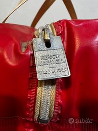 Questo oggetto è una borsa termica vintage Coca-Cola prodotta da FRENCO MARWELL per The Coca-Cola Company. Presenta il classico logo rosso e bianco del marchio. Riporta la scritta "Bevete" (italian version) e "MARCHIO REG." Ideale per collezionisti di memorabilia legati al marchio.