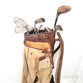 Borsa da golf vintage con 10 mazze.