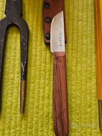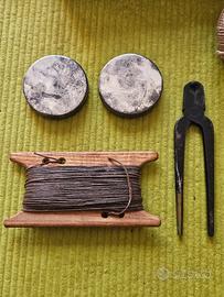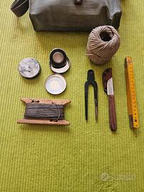 Kit Genio militare/tecnico/riparatore in ottime condizioni come da foto composto da _2 rotoli di nastro isolante vintage originale anni 60 con relativa custodia _metro pieghevole _rotolo di spago e rocchetto _coltellino Victoria con custodia _pinza crimpatrice accetto offerte