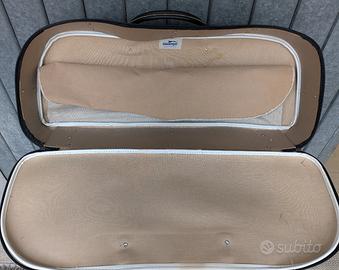 Dettagli: Doppia maniglia rinforzata, chiusura a zip robusta e piedini metallici sul fondo per evitare l'usura. Interno foderato in tessuto chiaro.