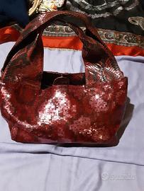 Borsa Tina Cantini, manici pelle di pitone,rivestita di paillettes,originale anni'00.Un usato come nuovo,,condizioni perfette.Misure: larghezza cm 32,altezza cm 28,pezzo unico. Spedisco ovunque, la consegna avviene tra le 24 ore e i 5 giorni, secondo la formula che sceglierete.