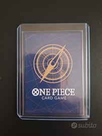 VALUTO ANCHE SCAMBI- Appena sbustato e inserito in Sleeve perfect-fit + Top Loader. GIOCO: ONE PIECE TCG LINGUA: INGLESE CONDIZIONI: NEAR MINT GRADAZIONE: NO Possibilità di ritiro a mano per chi lo desiderasse. Al momento della preparazione del pacco farò un video delle condizioni della carta e del processo di impacchettamento che potrò condividere con l'acquirente(qual'ora lo desiderasse). Questo per garantire trasparenza al cliente e assicurare anche me medesimo. Valuto offerte(realistiche) e resto a disposizione per altre foto e informazioni.
