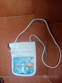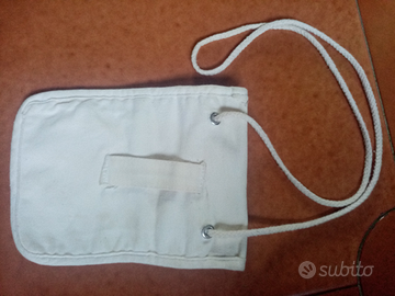 Tre tasche, cordino per spalla/girocollo e passante posteriore per poterlo infilare nella cintura.