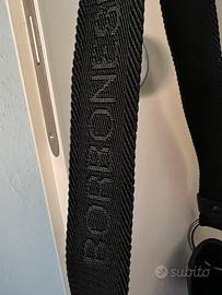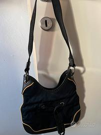 Borsetta Borbonese blu vintage in tela impermeabile con rifiniture beige