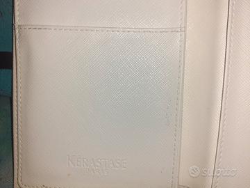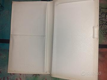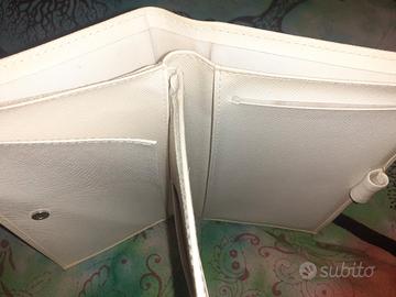 pochette portafoglio/portadocumenti multitasche anche per eventuale block notes, portapenna; colore bianco avorio, spessore 1cm ca. H21cm x L13cm