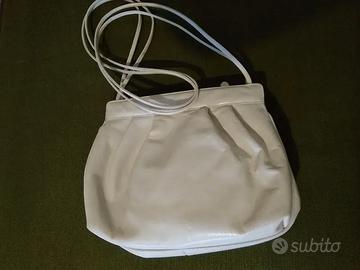 Borsetta vintage in pelle con tracolla tinta panna 26×21 cm, marca Visona' Plinio. Mai usata ma con qualche piccola imperfezione dovuta al tempo.
