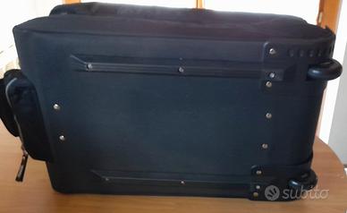 Borsone trolley multifunzionale da collezione Coca-Cola Athletics nero con l'iconico logo Coca-Cola bianco, perfetto per viaggi, palestra o come pezzo da collezione. Tre tasche esterne con cerniera, tiretti delle zip con logo, interno diviso in due ampi scomparti principali dotati di chiusura a rete e zip per tenere tutto in ordine, trasporto facile funziona sia come borsone a mano che come trolley grazie alla maniglia telescopica a scomparsa e alle ruote integrate, targhetta identificativa laterale per nome, fondo rinforzato con binari protettivi. La borsa è in ottime condizioni, tessuto resistente, pulita e pronta all'uso, le cerniere sono robuste e scorrevoli, le ruote e la maniglia estraibile sono perfettamente funzionanti, interni puliti.