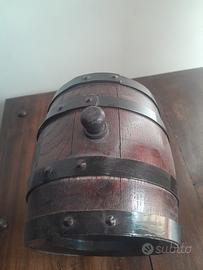 Bellissima botte in legno di piccole dimensioni, ideale come oggetto d'arredamento per taverne, cucine in stile rustico, cantine o locali. L'oggetto non è mai stato utilizzato per contenere liquidi, conservando quindi la freschezza e l'integrità del materiale originale.