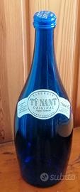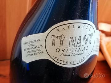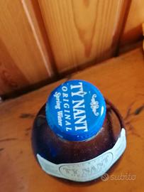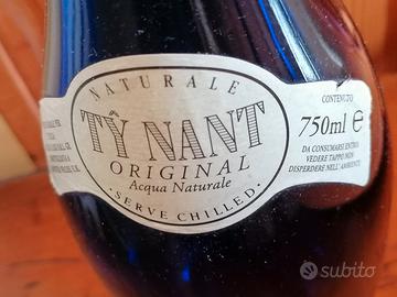 Bottiglia d'acqua Ty Nant, anni 90, colore Cobalt blue. Bottiglia vuota da collezione. Etichetta non perfetta, come in foto.