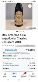 vendo bottiglia Amarone Masi costa sera classico del 2001 a €80 r per informazioni via mail Non faccio spedizioni