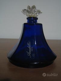 Bottiglia Vuota vintage in vetro blu per profumo con tappo in vetro lavorato in stile Swarosky della ANNABELLA Pavia (vedi foto per i dettagli)
