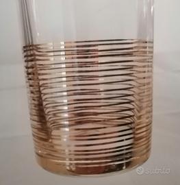 Vetro soffiato con decori circolari in oro zecchino. Il vetro dei bicchieri è veramente finissimo. (Stile veneziano)
