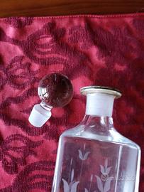 Bottiglia artistica artigianale in vetro serigrafato con collo in argento
