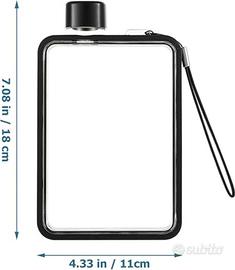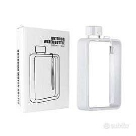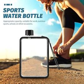 Bottiglia d'acqua quadrata piatta, portatile, trasparente, per sport, riutilizzabile, per sport, viaggi, fitness, palestra.
