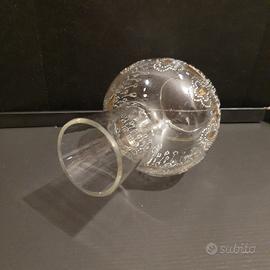 Da eredità, vendo bellissima ed affascinante bottiglia / caraffa da notte, risale agli anni '30 / '40 circa, veniva posizionata sul comodino con acqua per essere pronta all'uso in caso di sete notturna,( purtroppo non c'è più il bicchiere coordinato), sulla superficie presenta una particolare decorazione a rilievo con smalto bianco e piccoli dettagli in blu ed ulteriormente impreziosita da finitura dorata