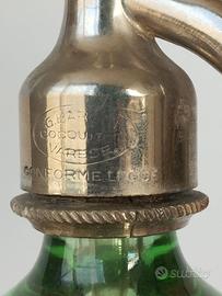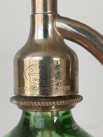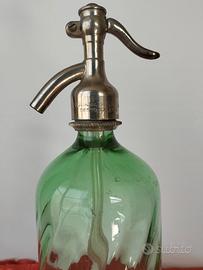 Vendo bottiglia da selz in vetro, colore verde . Piccola mancanza come da foto n.2 . La base è in ottime condizioni, leva funzionante. Dimensioni come da foto Spese a carico del destinatario