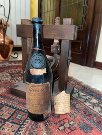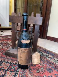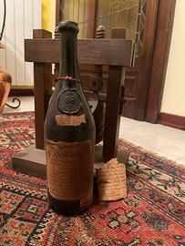 Vendo bottiglia decorativa “Nebbiolo della vendemmia 1805” completa di supporto in legno stile torchio antico.