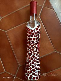 È una bottiglia di liquore interamente decorata e rivestita con piccoli pezzetti di vetro che al centro formano un bellissimo e grande fiore rosso. Non conosco il nome di questa tecnica, ma somiglia molto ad un particolare tipo di decoupage. Il liquido all'interno è presente da più di 40 anni e davvero non ricordo più che cosa contenga, ma di certo qualunque cosa sia è assolutamente impreziosita da questo maniacale lavoro artigianale. Un lavoro minuzioso e ripeto assolutamente artigianale e fatto rigorosamente a mano. Nel dubbio di non sapere più che tipo di liquore o bevanda vi sia all'interno, inserisco un prezzo solo inerente alla bottiglia e alla sua meravigliosa bellezza scenografica.