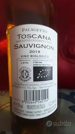 Bottiglia di vino Sauvignon Blanc prodotto dall'azienda agricola Palagetto nel 2019 Toscana IGT. Vino biologico, certificato biologico ICEA. Gradi: 12,5%