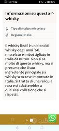 Vendo bottiglia di whisky REDIL, degli anni 60, introvabile, ma purtroppo aperta. Per intenditori. Consegna a mano.
