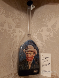 Bottiglia di grappa dei Distillati Zamperoni Veneto, in vetro soffiato, dipinta a mano con l'immagine di Van Gogh ( l'arte del decoro) del 1998,